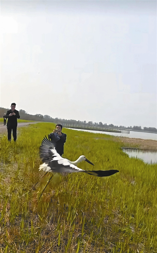 在本次放飞的鸟类中,两只国家一级保护动物东方白鹳尤为引人关注。其中一只的背后,有着一段历时数月的救助故事,今年2月,本报曾进行过报道。2025年12月,一只东方白鹳在七里海湿地奄奄一息,被七里海湿地自然保护区工作人员发现,工作人员立即将其打捞上岸,并移交至天津市野生动物救护驯养繁殖中心进行专业救治。经紧急救助,这只东方白鹳从无法站立、无法进食的危重状态,在救护人员连续三天的精心照料下,逐渐恢复体力,最终重新站起。检查表明,这只白鹳是因为迁徙途中觅食困难导致体力衰竭。后经一段时间的康复,它已完全恢复野外生存能力。