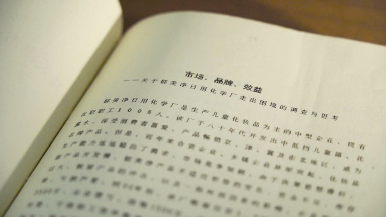 档案馆馆藏中,有一份1997年天津市一轻总公司政研会撰写的调研报告,它对1994年郁美净公司的处境作了描述。它说当时郁美净产品有点儿不太适应时代的发展,再加上假冒产品的冲击,以及库存过大和一些外部因素的影响,郁美净厂已处于一种非常困难的境地:它的生产处于滑坡阶段,企业效益也不好。其中列举的一些数字更是触目惊心——当时郁美净厂的账面上只有3.7万元,但是有3500万元的欠款,有1500万元的挂账和浮亏。这意味着,企业基本上已经到了瘫痪的地步。