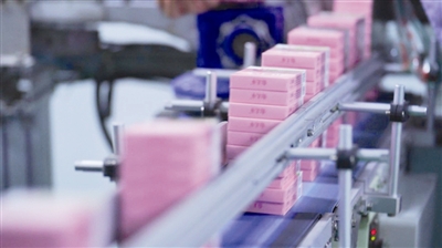 我们现在的设备跟以前我姥爷那个年代相比,已经发生了天翻地覆的变化。现在的设备全部都是自动化生产,车间现场已经看不到几个操作工了。如今,郁美净每天的产能已经达到了36吨,每年的产量有6500吨左右。