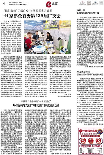 日前,第139届中国进出口商品交易会(广交会)在广州盛大开幕,这场被誉为中国外贸“晴雨表”和“风向标”的盛会,汇聚全球客商,搭建经贸合作桥梁。天津四维有限公司、天津帕帕吉诺工业科技有限公司、天津合众挺汇农业发展有限公司等44家首次参展企业组团亮相,携各自核心产品与创新成果,依托广交会国家级开放平台,全方位展现天津企业“智造”实力与产业风采,积极拓展国际市场,深化全球经贸合作,为天津外贸高质量发展注入强劲动能。