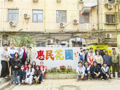 4月17日一早,和平区新兴街新兴北里社区惠民里小区2号楼前就热闹起来。大学生志愿者蹲在花坛边翻土、栽苗,旁边的白墙上,“惠民花圃”几个彩色大字正一点点成型。这是社区“惠民花圃”营造项目启动的第一天。