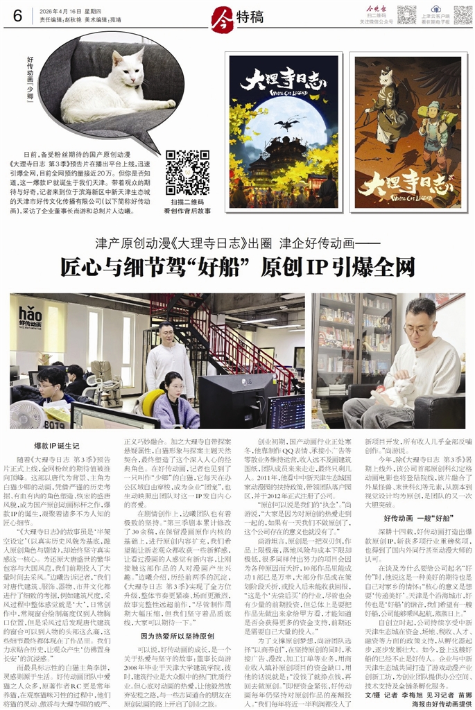 今夏,《大理寺日志 3》即将如约而至,那只白猫少卿会再次点亮屏幕。这部国漫的崛起从来不是一夜爆红,而是一群人愿意用十年,甚至一生,去做一件“不一定成功”的事。因为志同道合的热爱,他们默默把每一帧画面、每一处细节、每一句台词打磨到极致,把李饼那句“但行好事,莫问前程”活成了日常。