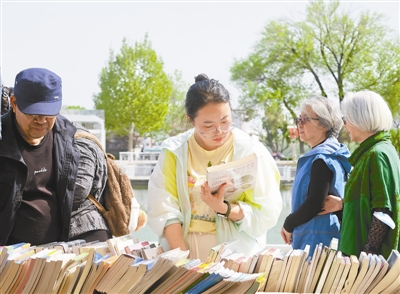 看新书淘旧书、参与文化活动、打卡集章、体验非遗,还能为明年的自己许一份阅读的愿望……由市委宣传部、市城市管理委主办,天津出版传媒集团、南开区委宣传部、河东区委宣传部、水上公园管理处承办的2026年海河书香节·水上公园书市,正在水上公园水晶广场火热进行中。春和景明的氛围中,全面升级的“阅读+”系列活动,让书市成为一场全景式、沉浸式的书香体验,呈现着全民阅读的全新打开方式。