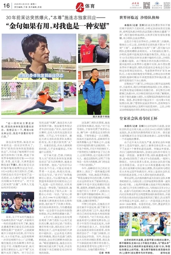谁也没有想到,施连志30年前的这一段采访突然火了,那句“把我的身体恢复到最佳状态”,不仅成了短视频平台的流行语和热门文案,更成了体育界争相模仿的对象——向余望、李昊、高天意、天津男篮的赖俊豪(下图),都在接受采访时惟妙惟肖地模仿过这句话。3比0击败云南玉昆队后,巴顿、闫炳良也在采访中复刻了这一名场面,让人感叹“这是天津球员间隔30年的呼应”。对于自己的突然“出圈”,当事人又是如何评价的呢?