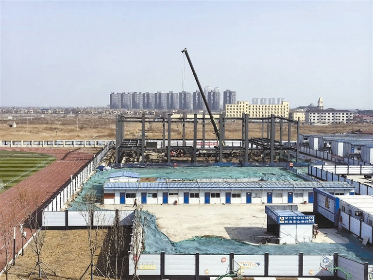 位于团泊东区的天津外国语大学团泊实验学校高中部,规划建设36个教学班,可提供学位1800个。目前教学楼已完成一层主体施工,体育馆已完成70%钢结构安装,预计今年10月主体封顶,明年8月投入使用,届时该校将实现十二年制全学段招生。