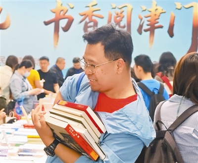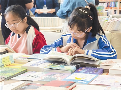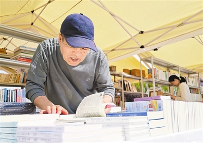 4月23日是“世界读书日”,由市委宣传部、市城市管理委主办的2026年海河书香节·水上公园书市内,往来人群络绎不绝。不同年龄段的爱书人因书相聚,勾勒出动人的全民阅读画卷。今起,本报推出系列报道——天津全民阅读调查,多角度呈现“书香天津”这幅动人的春日图景。记者 曹彤 摄