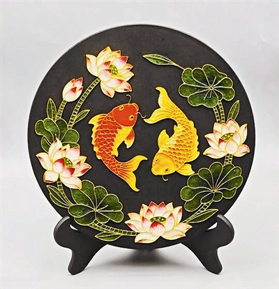 绘有“柿柿如意”“年年有余”图案的3D点蓝工艺盘大气温润;“云肩”“葫芦”主题相框古韵悠长。每一件作品都承载着跨越山海的祝福,也藏着天津手艺人以科技赋能传统工艺的巧思,还有一批虽然经历着人生风雨却努力向前的命运挑战者的力量。