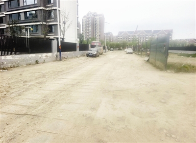 “现在只有小区北侧的主干道常海道是修好的,通往小区内部的小路都没有修,回家的这‘最后一公里’太难了。”居民无奈地说。记者在居民的指引下来到一期和二期之间的道路,道路由黑色铁板铺设,铁板上满是泥土,道路正中央用半米高的白色隔离带隔开,但隔离带大多损坏。道路两侧,有不少机动车在此停靠。在二期和三期之间,有一条更宽一些的道路,同样用黑色铁板铺设,经过长期使用,黄土已经将铁板覆盖,使道路成了土路,遇到车辆驶过,就扬起一路尘土,从此经过的路人不得不掩住口鼻。三期旁的顶湖路,相较于前两条道路好得多,自常海道开始向西修了两三百米的柏油路,然后道路就变成了土路。柏油路和土路之间,还有十多厘米的落差。“这一半的路,还是我们多方反映后,于去年修好的,算是一点点小进展。就这一半的路,还没有路灯。”三期的一位居民无奈地说。