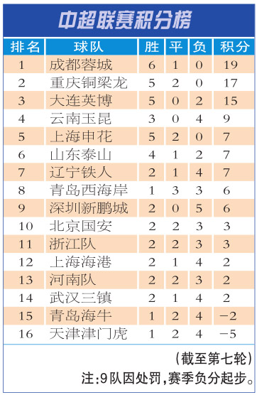 中超联赛积分榜