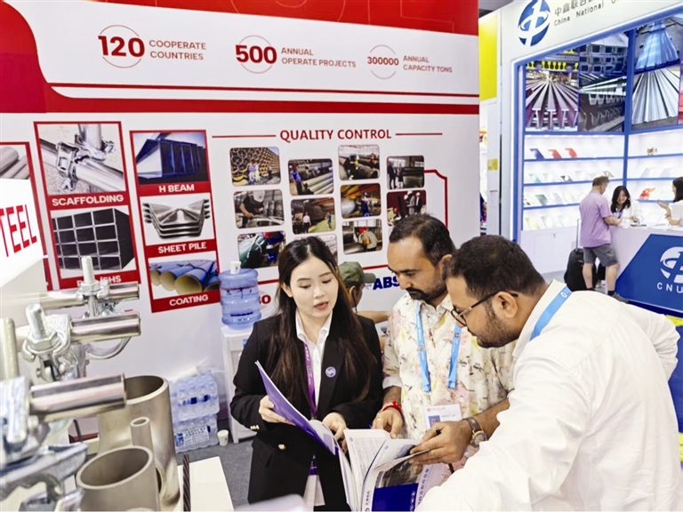 在天津信跃工贸有限公司展位前,销售人员向采购商热情介绍,很快便有客户达成意向。“他们有很好的产品,也很专业,他们的产品包含了不锈钢无缝管、焊管等所有管道,是非常好的合作伙伴。”一名采购商说。在天津市凯杰国际贸易有限公司展位前,不少采购商被产品吸引驻足,甚至现场变身推销员为企业“代言”。与此同时,源泰德润、宝来钢业、天应泰、鑫湖工艺品等等众多静海参展企业的展位也备受关注。