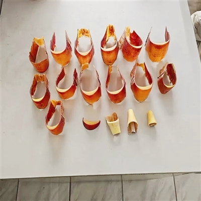 这种栖息在东南亚热带雨林中的大型犀鸟,有着独特的实心头骨。雄性盔犀鸟的头骨经皮脂腺分泌物染色后,呈现出红黄相间的温润色泽,被不法商家加工成工艺品后,一度被炒出天价。可光鲜亮丽的“文玩”背后,是盔犀鸟的灭顶之灾。为了获取完整的盔犀鸟头骨,盗猎者往往会残忍地将其杀害。而这种一夫一妻制且繁殖率极低的鸟类,早已因过度盗猎濒临灭绝,被列为国家一级保护动物。