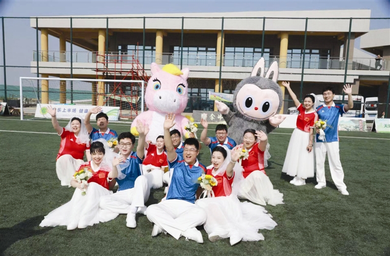 4月25日上午,青春同路·爱在绿茵——宁河区第四届京津冀青年集体婚礼,在宁河区李玮锋足球俱乐部浪漫举行。来自京津冀的超百名新人携手步入婚姻殿堂,在亲友、嘉宾与社会各界代表的共同见证下,许下相守一生的誓言,共启幸福人生新征程。