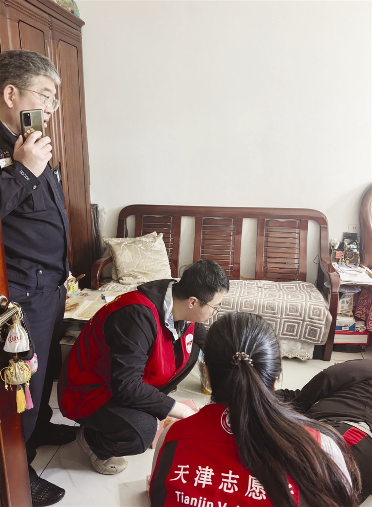 3月18日,南营门街道文化村社区网格员马蔷薇日常走访来到张奶奶家门口,反复敲门没有回应。马蔷薇注意到,老人常拄的那根拐杖就放在门边。她立即向社区报告并报警,同时联系老人居住在海外的女儿。大伙儿破门进屋后,发现张奶奶已经晕倒在地,经医院抢救,终于转危为安。