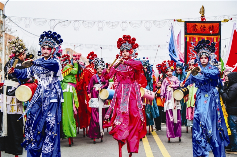 活动现场人头攒动,游客们纷纷驻足观赏、举起手机记录,沉浸式感受传统民俗的独特魅力,每到精彩之处掌声不断、叫好连连。一名小女孩在爸爸妈妈的陪伴下来到现场,她骑在爸爸的肩头,目不转睛地追随着高跷队伍。“妈妈,他们好高呀!”。李女士一边护着孩子,一边笑着告诉记者:“我们是葛沽本地人,我小时候也是这么看的。现在带孩子来,让她也感受一下,你看她多高兴。”一位专程赶来的市民激动地说:“每年来葛沽看宝辇会,已经成了刻在心里的年俗。今年场面更盛大、看点更丰富,还有这么多年轻人参与,让我们看到了非遗真正的生命力。”