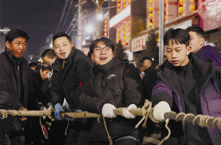 上图为3月3日,在临潭县城关镇西大街,当地群众参加“万人扯绳”民俗活动。此次活动参加者以长度超过1800米、重达16吨的钢绳为器械,展开拔河角逐。 新华社记者 张睿 摄